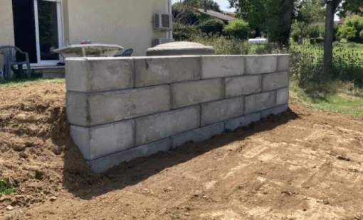 Vous recherchez un mur de soutènement en blocs béton type LEGO à Saint-Grégoire…