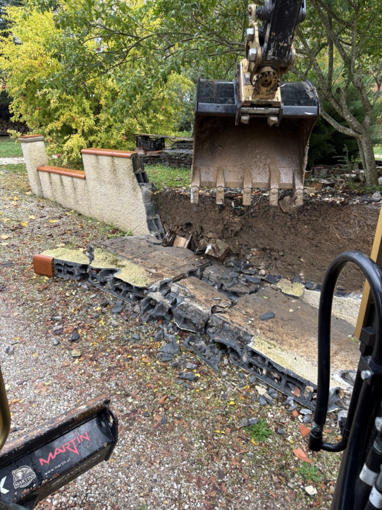 Sur ce projet situĂ© Ă Albi, la mission consistait Ă dĂ©construire un ancien mur menaçant de tomber afin de prĂ©parer lâespace pour un futur projet.
